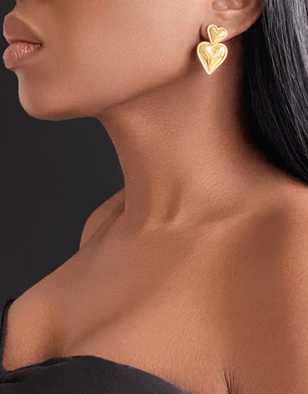 TI AMO Heart Drop Earrings Gold