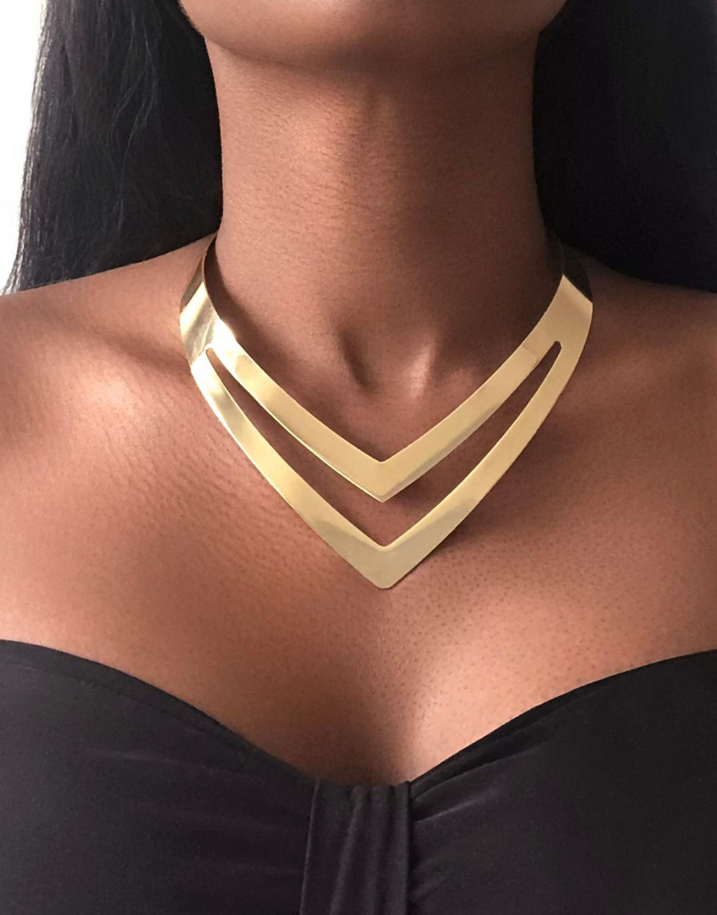 Ti presentiamo la nostra collana minimalista a doppia V, un design elegante che accentua la tua scollatura in modo glamour.